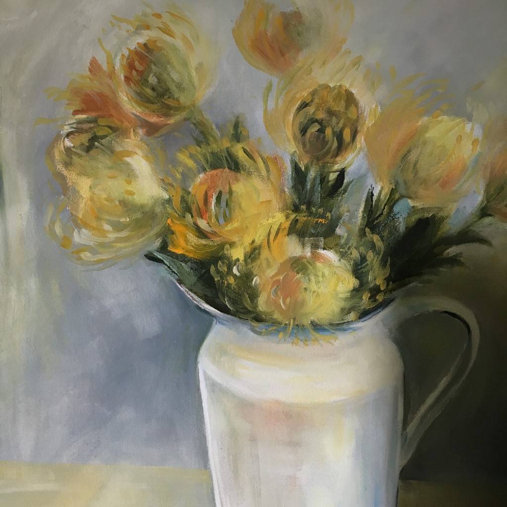 My paintings are all South African subject matter. From flowers, landscapes, holidays in Mozambique and Transki, to trees and animals. I also enjoy painting abstract landscapes in bright colours and splashes of watercolour here and there for design work.