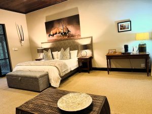 Wonderfully spacious suits named after Swartberg Mountain animals with King sized beds and en suites have both bath and shower. There is a Nespresso machine. The private porches have stunning views. From R3000 to R3550