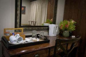 With breathtaking views of the Swartberg Mountains from your private porch, your bed is King sized and the en suite has both bath and shower. These suites are Malachite and Protea. From R2650 to R3400