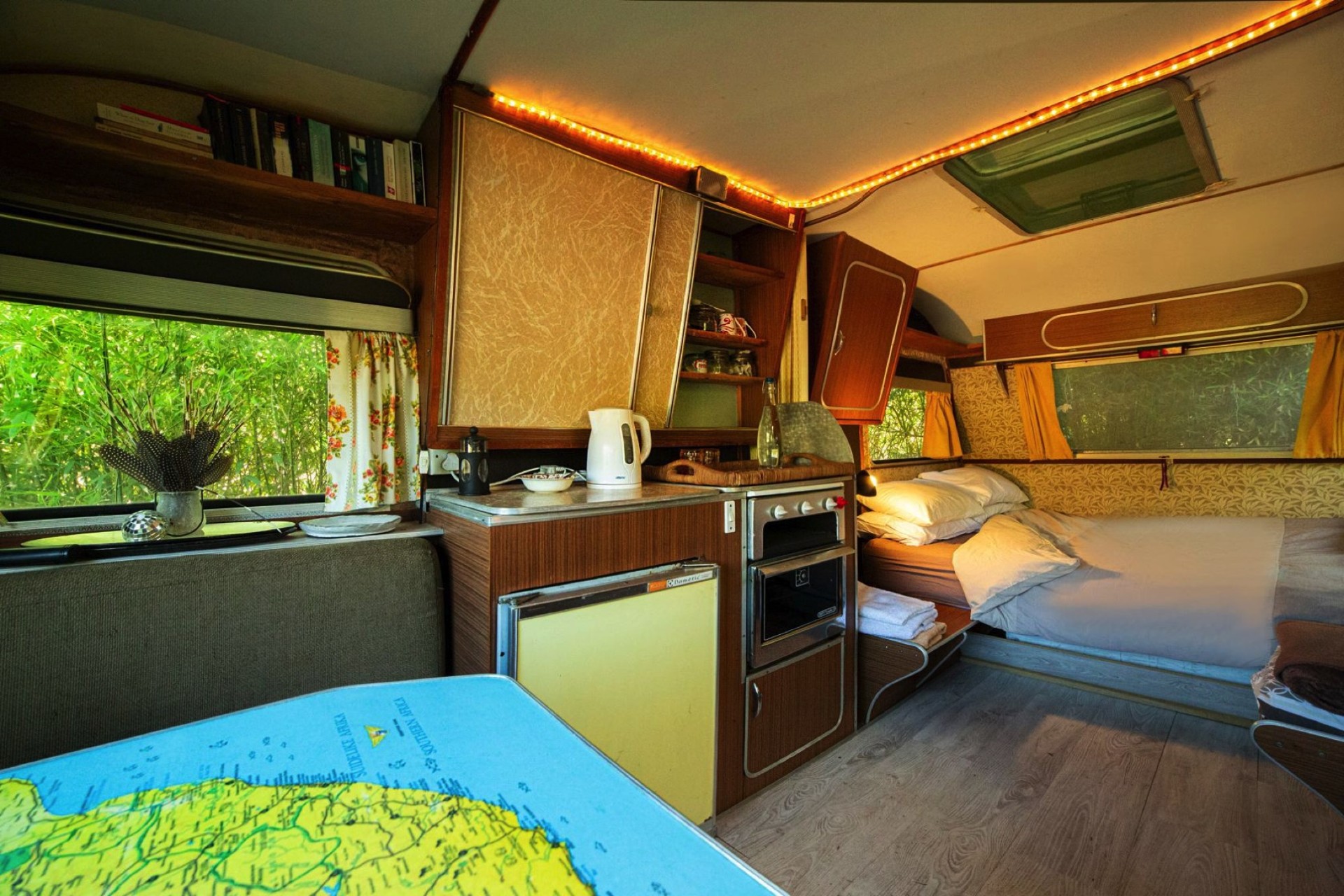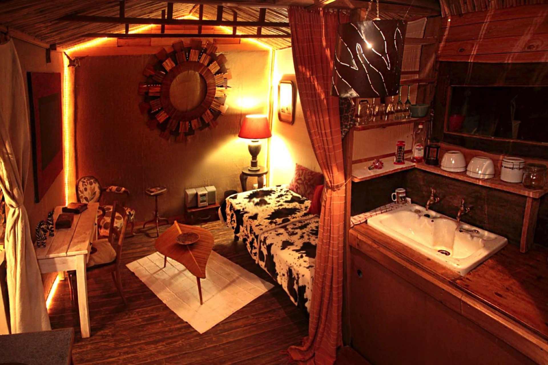 For something completely different, a couple can choose The Teepee. The Teepee has 2 single beds and a gas stove in the centre.