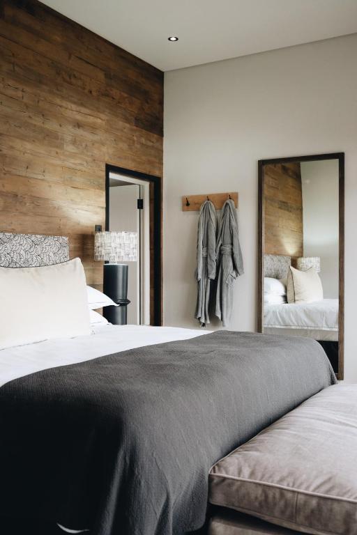 The villa features two luxury ensuite bedrooms, both opening onto outdoor spaces and offering premium linens, plush bedding, and elegant bathrooms.
