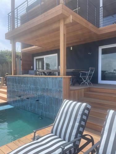Luxury Suite Two, located downstairs, overlooks the river mouth and opens directly onto the deck and heated swimming pool. This suite also features a king-sized extra long bed, lounge area, TV, and en suite with a large shower and bathtub.
